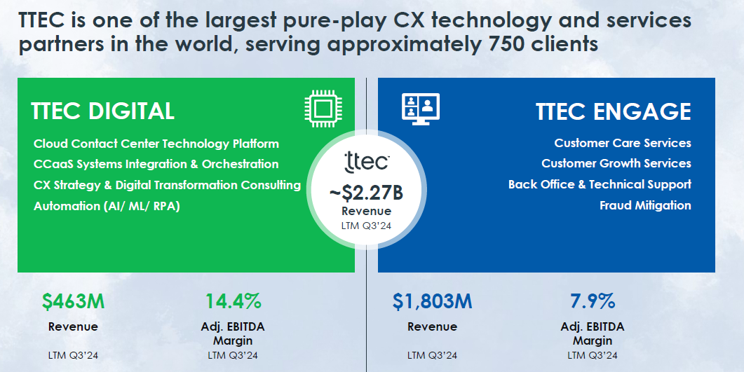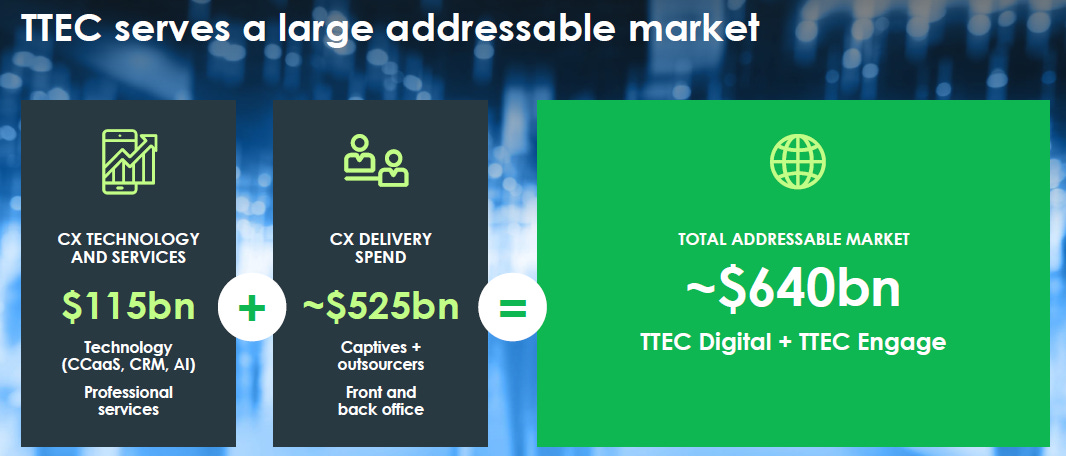 TTEC Holdings (TTEC) is a customer service outsourcing company. Within that industry they call themselves customer experience, CX for short, and it is approximately a $600 billion annual global industry. Of that $600 billion, TTEC did $2.26 billion in sales in the last twelve months, which is incredible for a $166 million market capitalization company trading at 0.07x price to sales.