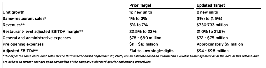 Portillo’s slashed guidance outside of the regular earnings call schedule. It appears the consumer is even weaker at the moment that anyone had anticipated. They also guided that their goal of 12 new restaurants in 2025 has been pared down to 8. The reduced capex does help the free cash flow profile, however, and management is guiding for positive free cash flow in full year 2026.