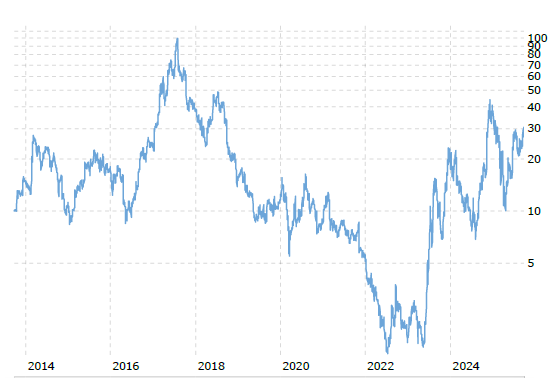 I am slowly starting to appreciate the data center buildout. Maybe that’s a sign of the top, I hope I’m not your contrarian indicator. But I believe the data center buildout will go on until lenders are unwilling to lend any more for it, and we only recently saw the very first hyperscaler use any debt at all when Meta used $26 billion of debt for their new Louisiana Hyperion project. Meta has $90 billion of trailing twelve month operating cash flow, so they could have self-funded, but they chose debt so as not to impact return of capital to shareholders. In 2024, construction began on 7GW of new data centers in the US. In 2025, that number is projected to be 10GW, and to stay relatively flat around 10GW of capacity per year until 2030.