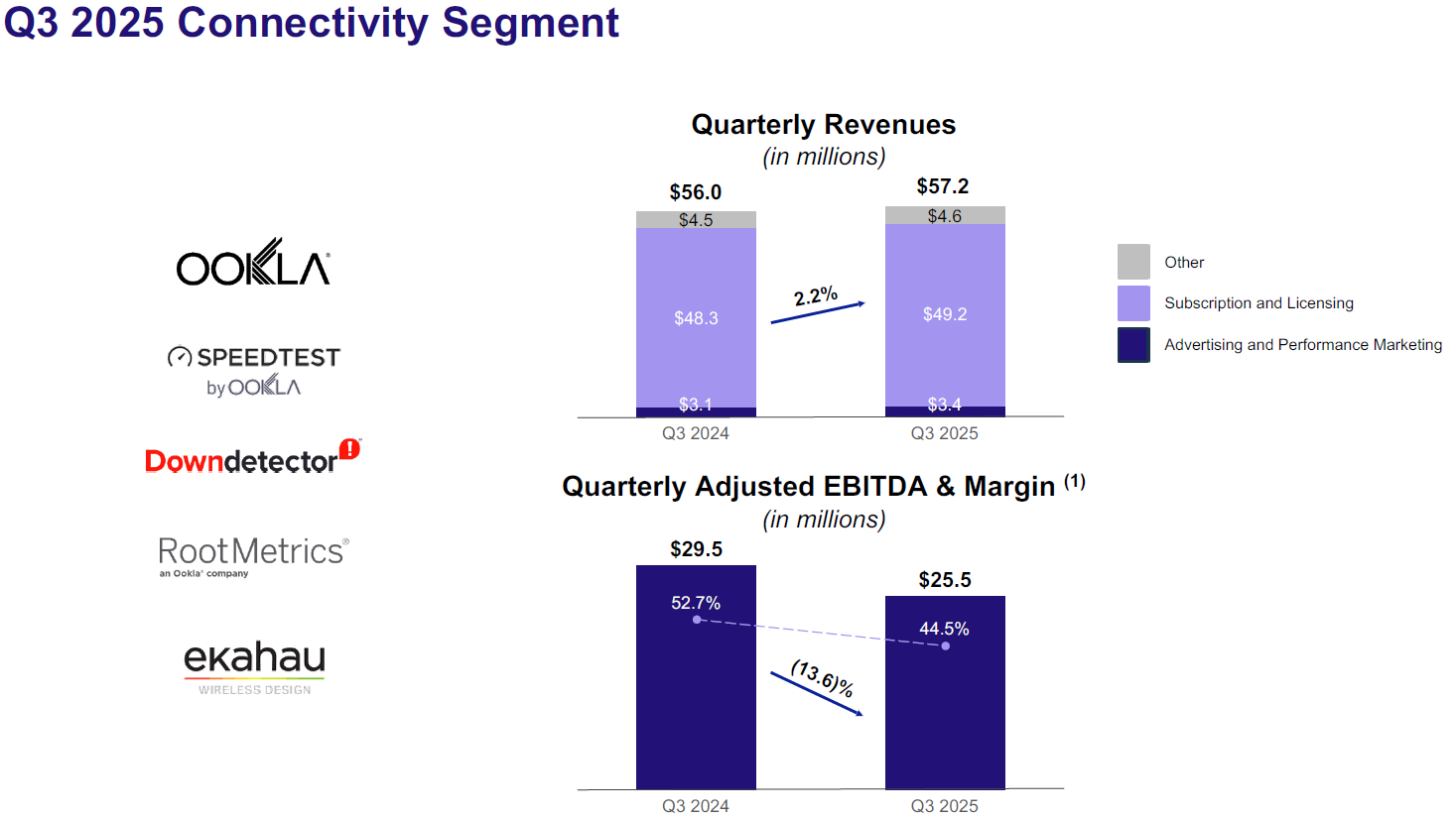 There are two standout segments that should be resilient and fetch high multiples, Connectivity is the least likely to be disrupted by AI, and Cybersecurity is one of the hottest sectors right now due to fears of increased threats due to AI. It is possible at some point that Cybersecurity itself is disrupted as software becomes cheaper to write, but for the last couple of years, cybersecurity multiples have gone up due to AI, not down. Both have the majority of revenue from subscriptions, which in the past would have led to outrageous multiples.