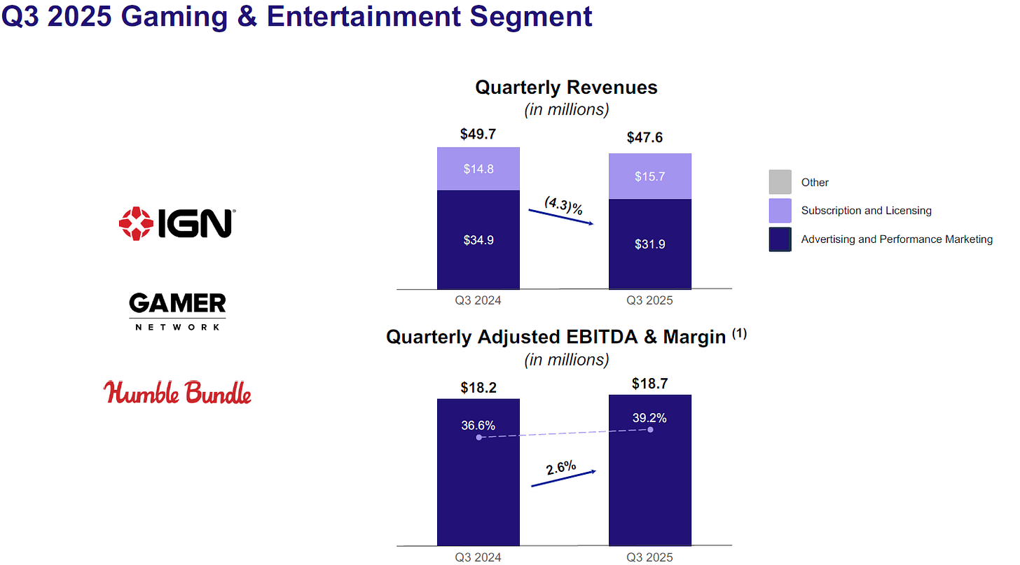 If I were in charge of cracking the walnut, I would separate shopping, gaming, and wellness from connectivity and cybersecurity. But Ziff Davis is going to respond to letters of interest from potential acquirers, so how the walnut is going to be cracked is a bit up in the air. Management did clarify that they have not yet received any interest for the whole company, but anything is possible.